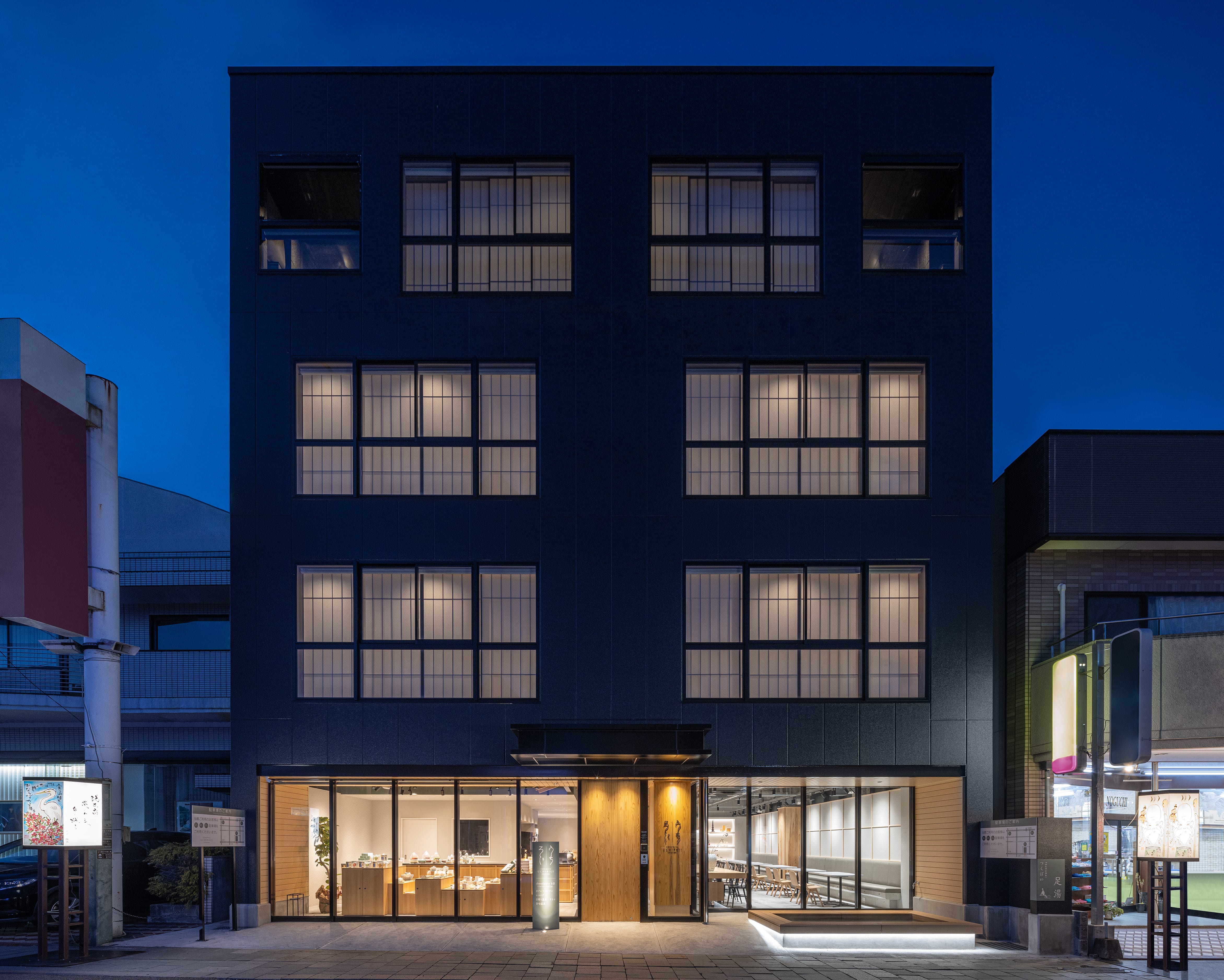 嬉野温泉 宿屋うちろじ 所在地:佐賀県嬉野市 用途:旅館 構造:鉄骨造 敷地面積:520㎡ 建築面積:405㎡ 延床面積:1612㎡ photo:toshihisa ishii (Blitz Studio)